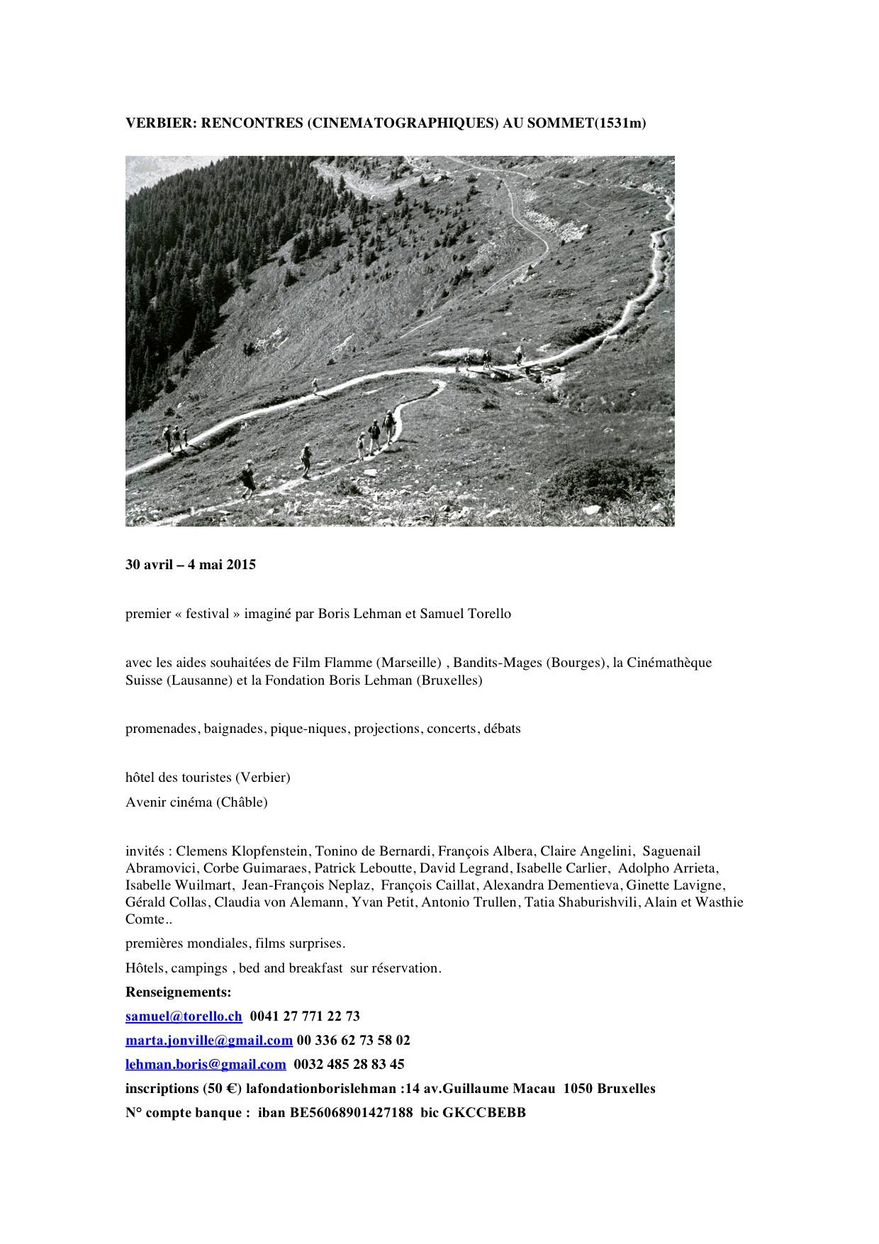 Pendant les premières Rencontres au sommet (30 avril-4 mai) initiée par Boris Lehman et Samuel Torello, avec l’aide de Bandits-Mages.